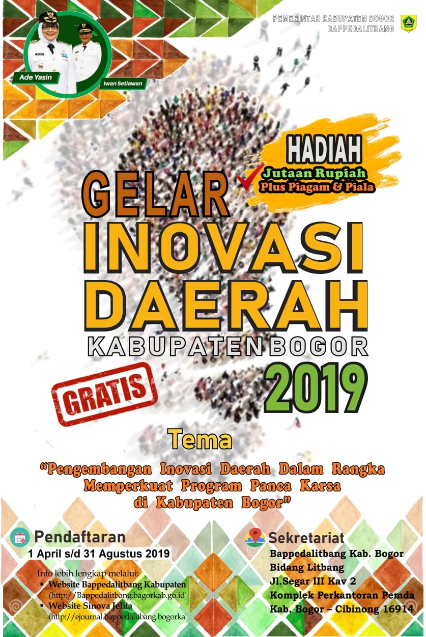 Gelar Inovasi sudah memasuki tahun ke 4, Pemerintah Kabupaten Bogor melalui Bappedalitbang telah melaksanakan Gelar Inovasi Daerah mulai Tahun 2016 dan kini sudah memasuki Tahun ke4. Apa itu Inovasi, inovasi adalah kegiatan penelitian, pengembangan, dan/atau perekayasaan yang bertujuan mengembangkan penerapan praktis nilai dan konteks ilmu pengetahuan yang baru, atau cara baru untuk menerapkan ilmu pengetahuan dan teknologi yang telah ada ke dalam produk atau proses produksi. bappedalitbang memiliki sistem inovasi daerah(sida) atau bisa disebut sinovajelita.