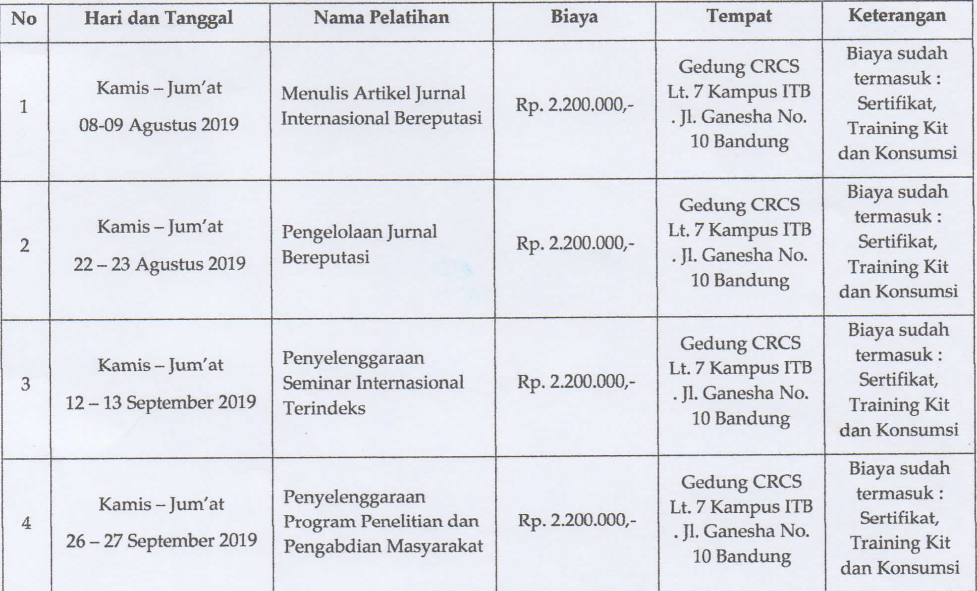[ITB] Undangan Pelatihan Continuing Education Program (CEP) 2019