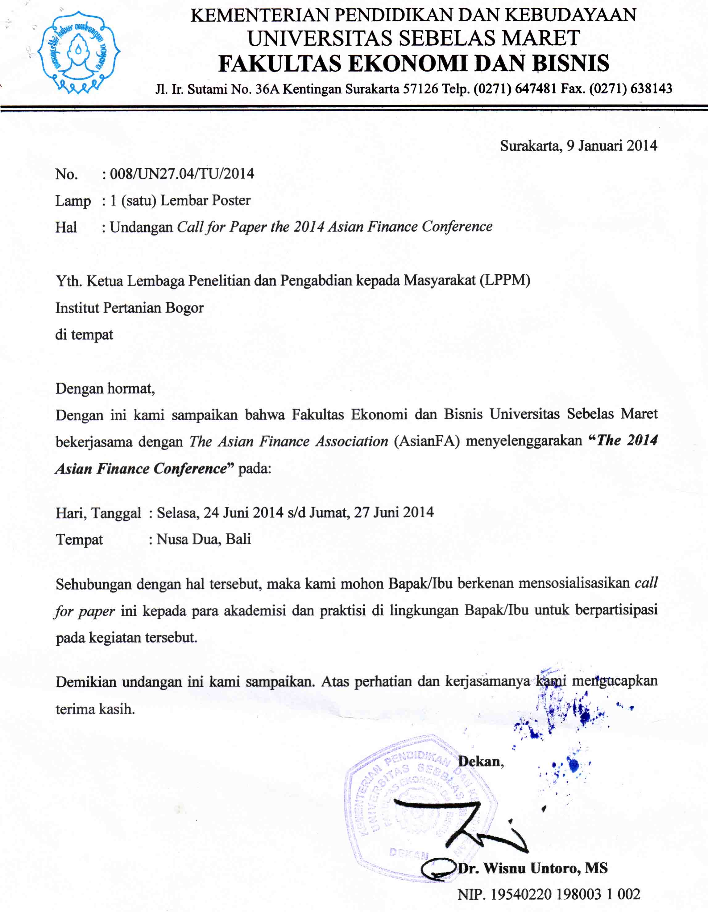 1. Surat Undangan Call for Paper “The 2014 Asian Finance Conference”